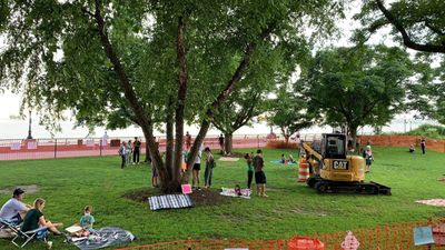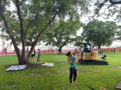 By Friday, member of the PS89 PTA created a new chat - just formed to Save Rockefeller Park - and the #PausetheSaws movement started. On Saturday, construction equipment started rolling into Rockefeller and the first protest was called for Saturday afternoon.